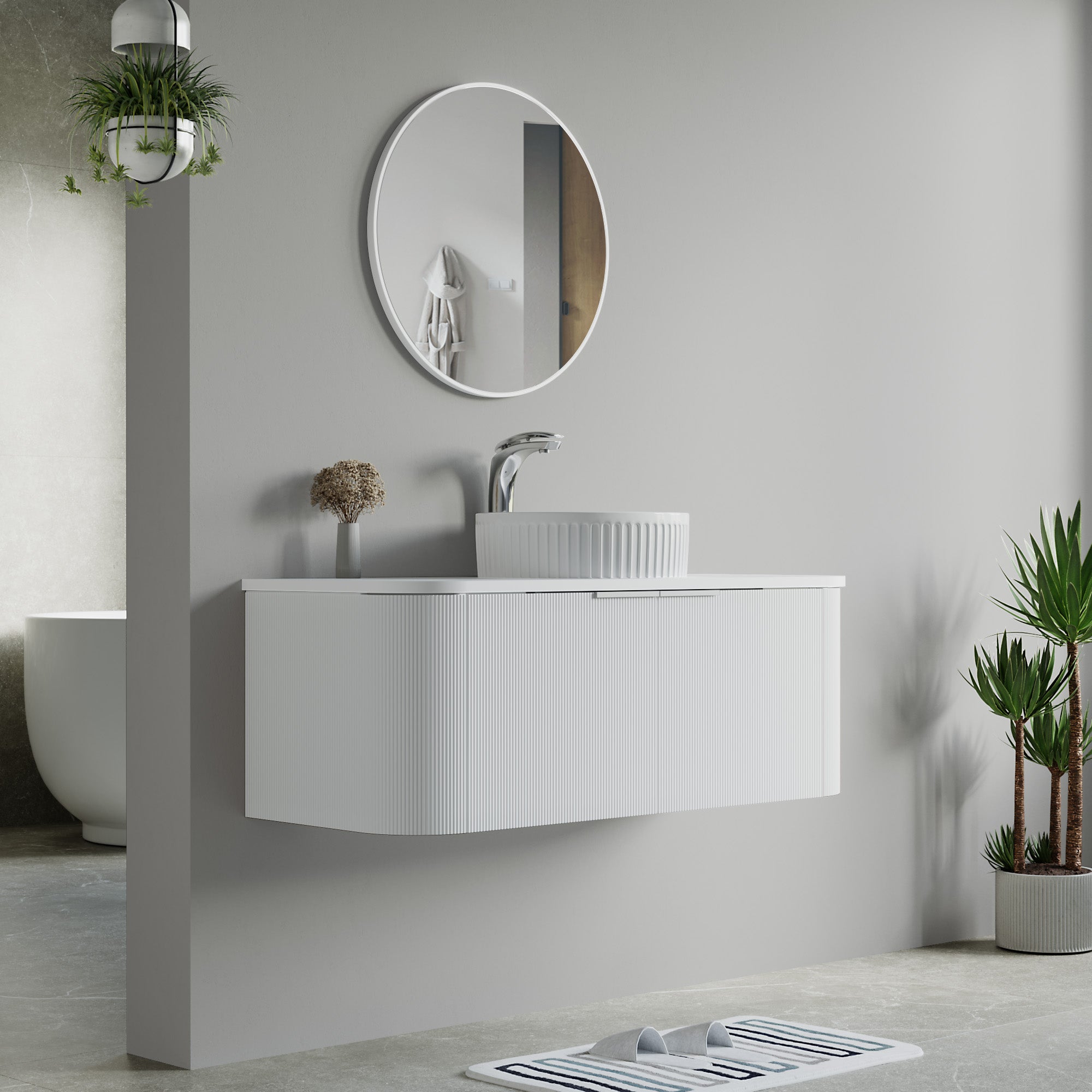 Dowell 48" Wall-Mounted/Floating Fluted Bathroom Vanity Combination Set - One 36" Fluted Base Vanity, Two Fluted Arc Sides, One Sintered Stone Top, With/Without One Fluted Vessel Sink - 032 48R Series