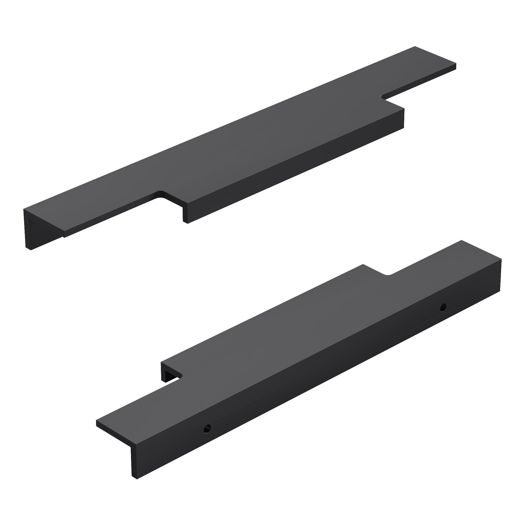 Dowell 3063 009 aluminum cabinet drawer/door pulls/handles in black and brushed satin/silver/black fit on the edge of the drawer or door and are 8-7/8"" in length. They are attached to the inside of the drawer/door face via screws where the screw holes are 5-3/4" center-to-center (C-C).