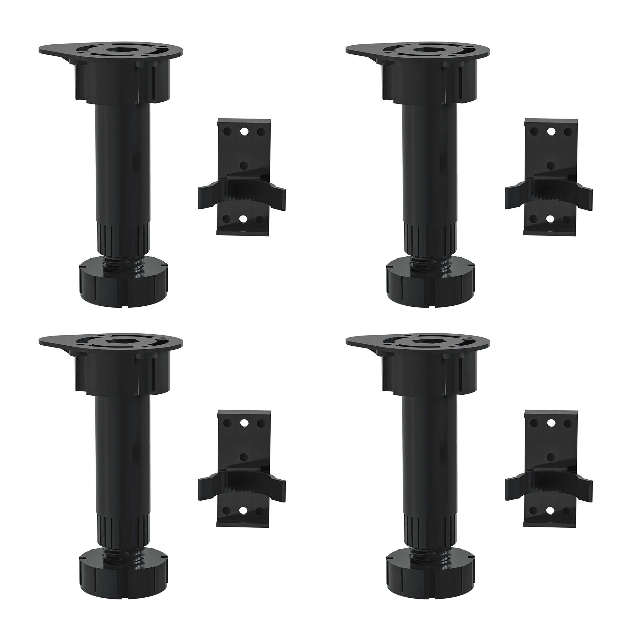 Dowell 4007 BL4 cabinet leveler legs are a versatile and durable way to finish any kitchen cabinet installation. Crafted from high-quality ABS plastic, this leveler leg ensures long-lasting stability. Its user-friendly design allows for easy adjustment by hand to change the height of the leg from 4-9/16" to 5-7/8" to ensure a level cabinet. For added convenience, it comes with an optional clip-on piece, ideal for attaching toe kicks seamlessly.