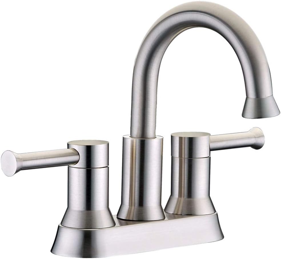 Dowell 8001 002 two handle bathroom faucet with brass waterway and ceramic disk cartridge requires 3 hole sink application. Available with brushed nickel finish.