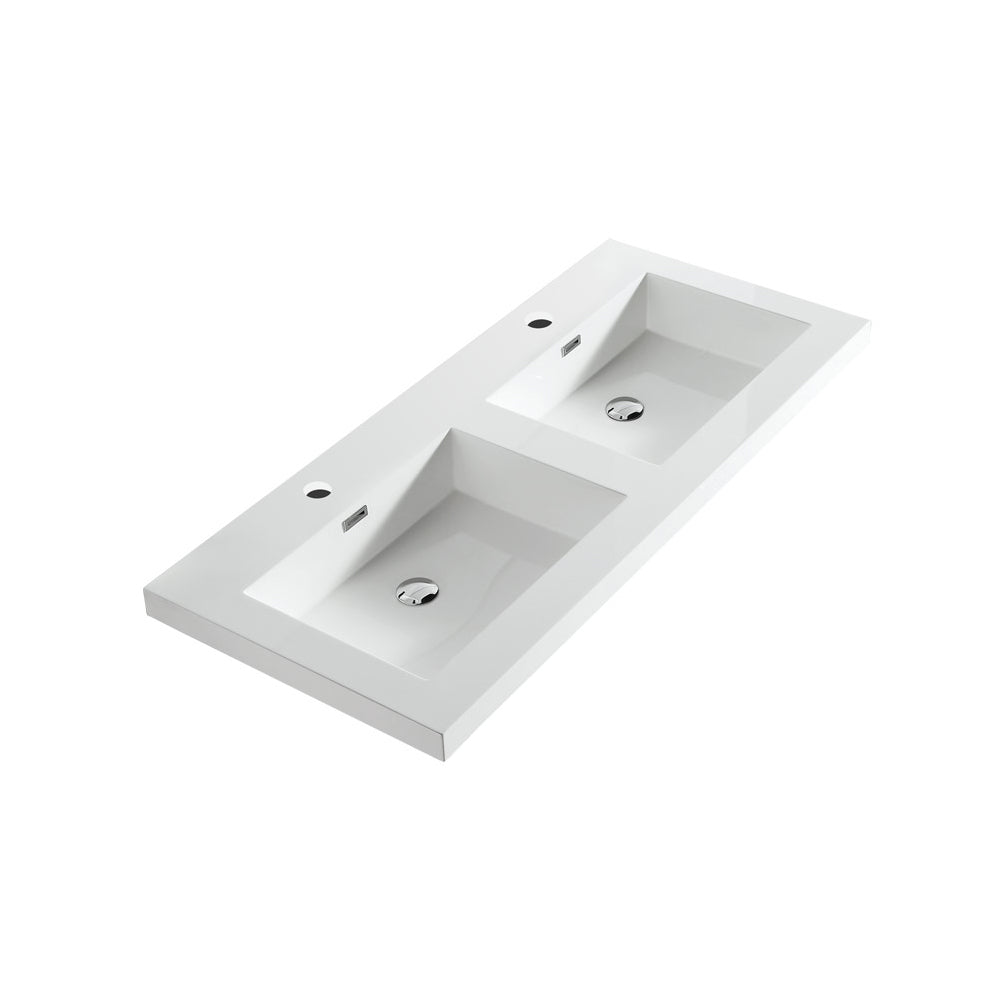 Dowell 48-1/8" Bathroom Topmount Resin Basin with Overflow - Two 19-1/4" Sinks, 4-3/8" Deep - 000 4818BP Series