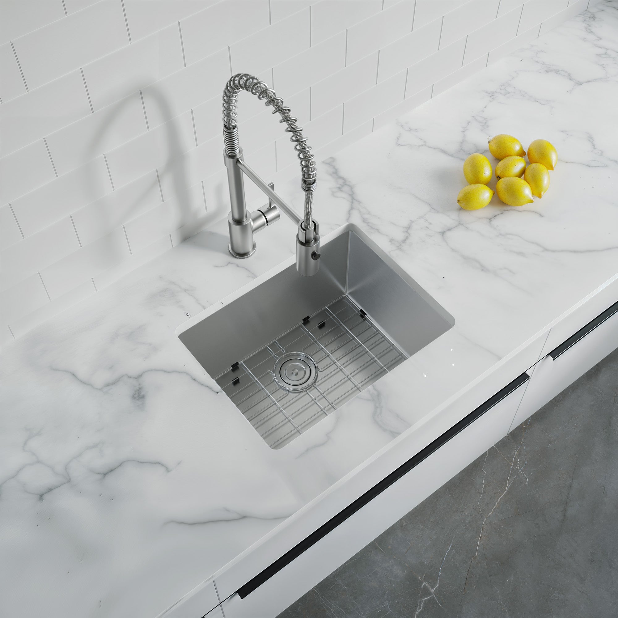 The Dowell 6008 Series 20" L x 15" W Handcrafted Undermount Kitchen Sink combines modern elegance with professional-grade performance. Constructed from premium 16-gauge 304 stainless steel and finished in a refined satin sheen, this sink features small-radius corners that maximize usable space while making cleaning easier. Its generous 10″ deep basin easily accommodates large pots, trays, and bakeware—perfect for busy home kitchens. Every sink comes complete with a stainless steel grid and strainer, adding both protection and convenience right out of the box.