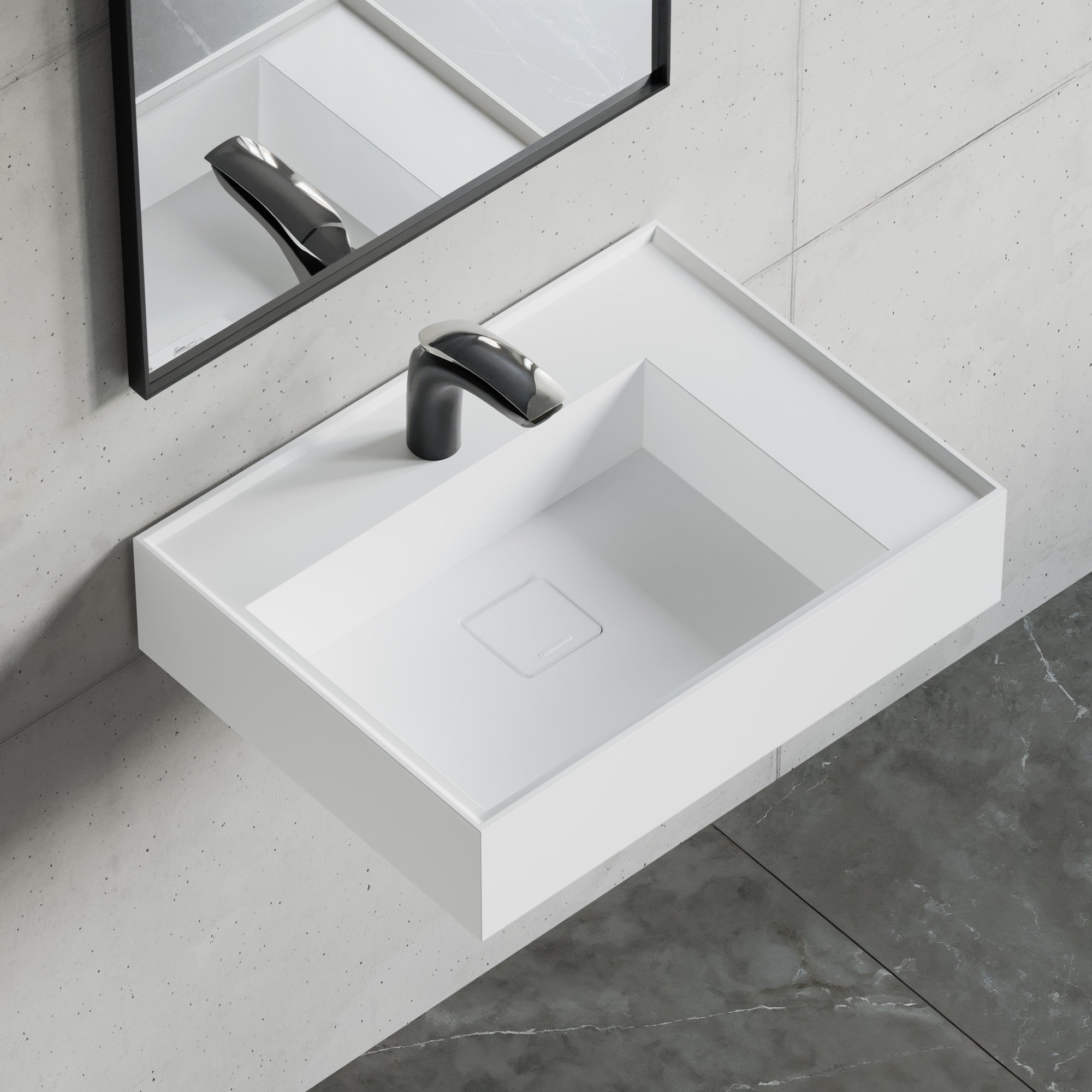 This contemporary wall-mounted or drop-in sink is an ideal option for both residential and commercial settings. Crafted from high-quality stone resin, this bathroom sink is built to withstand the test of time. The rectangular stone resin wall sink features a non-overflow design and an integrated square ceramic drain cover. It comes with one faucet hole. You can either mount this sink to your wall or use it as a self-rimming sink for a sleek modern appearance.